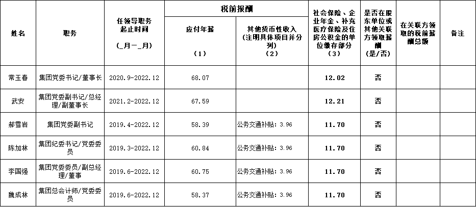 按照黑龍江省國資委《黑龍江省國資委出資企業(yè)負(fù)責(zé)人薪酬管理辦法》黑國資分〔2016〕202號(hào)文件精神,黑龍江省農(nóng)業(yè)投資集團(tuán)有限公司對(duì)由省國資委管理的集團(tuán)領(lǐng)導(dǎo)班子成員2022年度薪酬信息向社會(huì)披露如下。