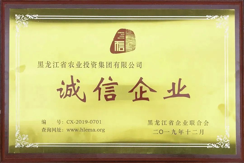 2019年12月11日下午,由黑龍江省企業(yè)聯(lián)合會主辦的2019黑龍江省推進企業(yè)誠信建設(shè)大會在哈召開,農(nóng)投集團被授予“誠信企業(yè)”榮譽稱號。
