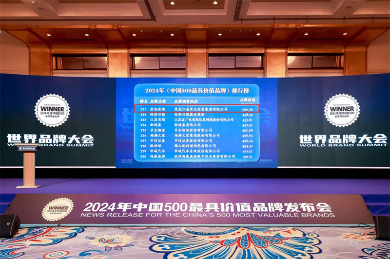 會上,發(fā)布了2024年《中國500最具價值品牌》分析報告。黑龍江省農(nóng)業(yè)投資集團有限公司(以下簡稱“農(nóng)投集團”)所屬農(nóng)投食品集團“金谷農(nóng)場”品牌以500.36億元品牌價值榮登《中國500最具價值品牌》排行榜第221位。農(nóng)投集團黨委書記、董事長常玉春代表農(nóng)投集團領取獎杯和獎牌。