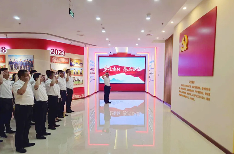 參觀后,全體黨員干部面向黨旗,舉起右拳,重溫入黨誓詞,再次堅定了“不忘初心、牢記使命”的信念和決心。