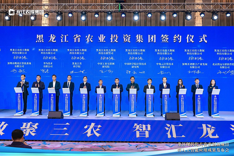 會上,農(nóng)投大數(shù)據(jù)公司與中國科學院計算技術研究所、工聯(lián)院網(wǎng)絡所、中國電子云、黑龍江省科學院、深開鴻、華為技術有限公司、致遠互聯(lián)、騰訊云、商湯科技、黑龍江移動、哈爾濱聯(lián)飛、鄭州華糧等12家單位簽署了戰(zhàn)略合作協(xié)議,標志著各方將在智慧農(nóng)業(yè)領域展開深度合作,共同推動黑龍江省農(nóng)業(yè)數(shù)智化進程。發(fā)布會現(xiàn)場還展示了“伏羲農(nóng)場”無人智慧農(nóng)機裝備和無人機試飛、水肥一體化等設備,展現(xiàn)了智慧農(nóng)業(yè)的先進技術和應用成果。