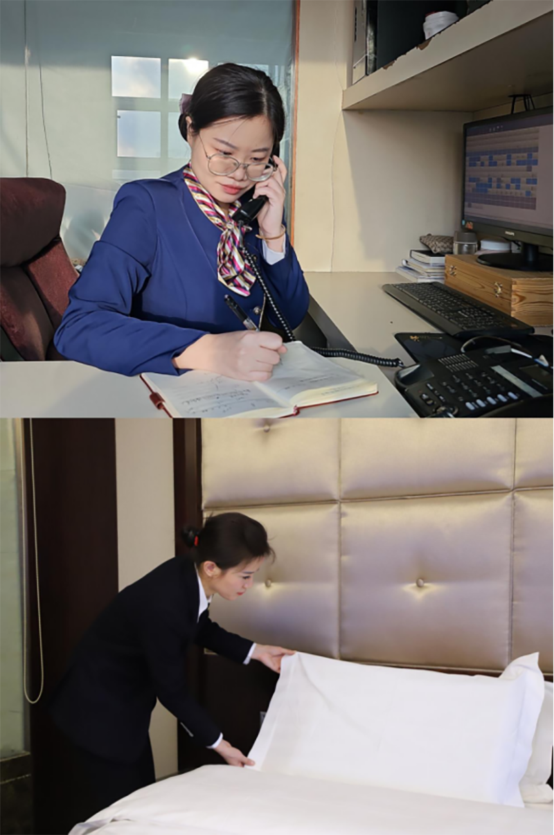 近期,酒店預(yù)訂量飆升,前臺(tái)員工們提前到崗,仔細(xì)梳理當(dāng)日預(yù)訂信息,知悉每一位客人的基本情況。從清晨到深夜,他們始終保持微笑,熱情接待每一位抵店的客人。他們用優(yōu)質(zhì)、高效、真誠(chéng)的服務(wù),讓每一位賓客感受到賓至如歸的溫暖。還有他們秉持真誠(chéng)服務(wù)態(tài)度,邁著矯健的步伐,穿梭于各個(gè)會(huì)議室中,讓各個(gè)會(huì)議室保持干凈整潔、桌椅排放整齊的狀態(tài),只為給賓客提供良好的會(huì)議保障。