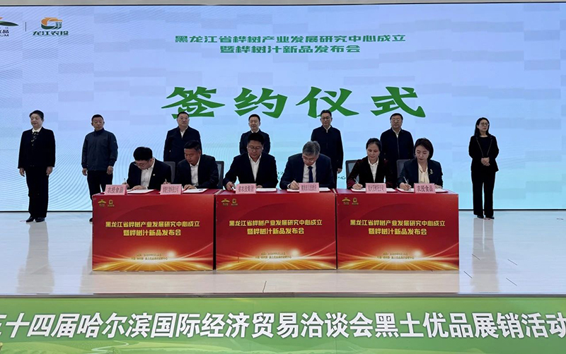 省國(guó)資委、省工信廳、省教育廳、省農(nóng)業(yè)農(nóng)村廳、省林草局、省農(nóng)業(yè)投資集團(tuán)等領(lǐng)導(dǎo)共同為“黑龍江省樺樹(shù)產(chǎn)業(yè)發(fā)展研究中心”揭牌。揭牌儀式后,農(nóng)投集團(tuán)與鶴崗市人民政府簽署戰(zhàn)略合作協(xié)議,農(nóng)投食品集團(tuán)分別與黑龍江省雨曉生物科技公司、杭州采鮮冠食品開(kāi)發(fā)有限公司簽訂合作協(xié)議。