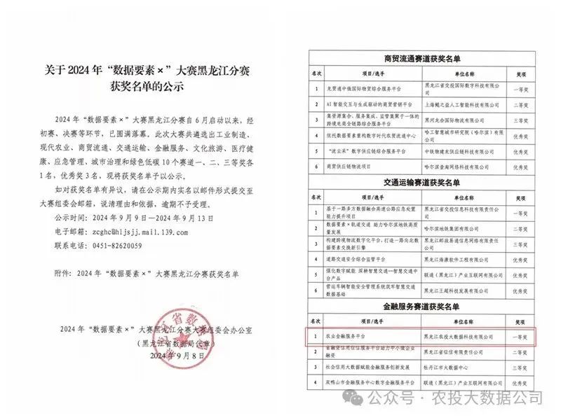 2024年6月,在省農(nóng)業(yè)農(nóng)村廳推薦下,黑龍江省農(nóng)業(yè)大數(shù)據(jù)金融服務(wù)平臺(tái)被人民銀行黑龍江省分行評(píng)為“金融科技賦能鄉(xiāng)村振興示范工程”項(xiàng)目,成為省內(nèi)唯一入選的企業(yè)運(yùn)營(yíng)示范工程,實(shí)現(xiàn)了從“金融支農(nóng)服務(wù)創(chuàng)新試點(diǎn)”到“示范工程”的成功蛻變。同年8月,在省數(shù)據(jù)局主辦的《2024年“數(shù)據(jù)要素×”大賽黑龍江分賽區(qū)決賽》中,團(tuán)隊(duì)?wèi){借農(nóng)業(yè)金融場(chǎng)景智能化解決方案,榮獲黑龍江分賽區(qū)金融服務(wù)賽道一等獎(jiǎng),團(tuán)隊(duì)參加“數(shù)據(jù)要素X”黑龍江省分賽區(qū)決賽,獲得金融賽道一等獎(jiǎng)。這些成果體現(xiàn)了團(tuán)隊(duì)在推動(dòng)農(nóng)業(yè)數(shù)字化轉(zhuǎn)型中的實(shí)踐價(jià)值。