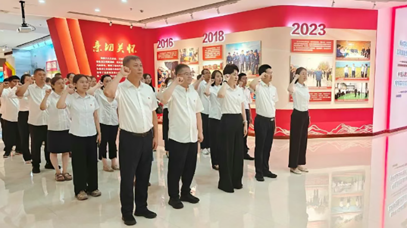 參觀結(jié)束后,全體黨員面向鮮紅的黨旗,莊嚴(yán)舉起右拳,重溫入黨誓詞。鏗鏘有力的誓言在展廳內(nèi)久久回蕩,不僅是對初心使命的再次宣示,更是對廉潔從政的鄭重承諾,彰顯了黨員干部堅守黨性原則、永葆清廉本色的堅定決心。