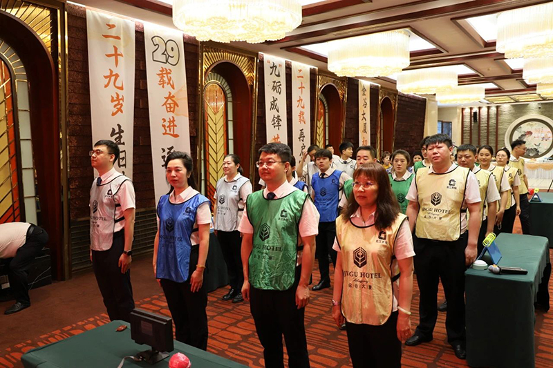 此次活動(dòng)圍繞“文化賦能、業(yè)務(wù)聯(lián)動(dòng)、趣味融合”設(shè)計(jì),設(shè)置了酒店主題電影問答、趣味對(duì)戰(zhàn)游戲、“金谷藍(lán)Bar”知識(shí)搶答賽等酒店專業(yè)性與趣味性的項(xiàng)目,既豐富了員工體驗(yàn),又強(qiáng)化了業(yè)務(wù)認(rèn)知。活動(dòng)中,在崗29年的“資深員工”以及與金谷大廈同歲的“同齡員工”先后作為代表發(fā)言,通過分享與企業(yè)共成長(zhǎng)的故事,傳遞代代金谷人堅(jiān)守初心、砥礪奮進(jìn)的精神力量。